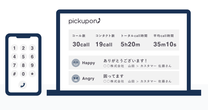 pickuponは、通話内容の重要箇所をpick upし、salesforce セールスフォース Senses センシーズなどのSFAへ自動入力・共有してくれるAI IP電話です。通話内容を録音&テキスト化、サマライズして要点をチームのワークスペースへ自動入力します。手間なく簡単にポイントだけ共有できます。電話しただけで自動で要点のmemoが残る不思議な体験!電話のやり取りが可視化されるので、リモートワーク(在宅勤務)にも大変便利です。