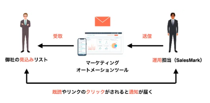 Sales Markは、リードナーチャリング、インサイドセールスなどの営業活動を効率化します。これにより、営業の完全DX化を支援し、次世代型のBtoBマーケティングを実現します。