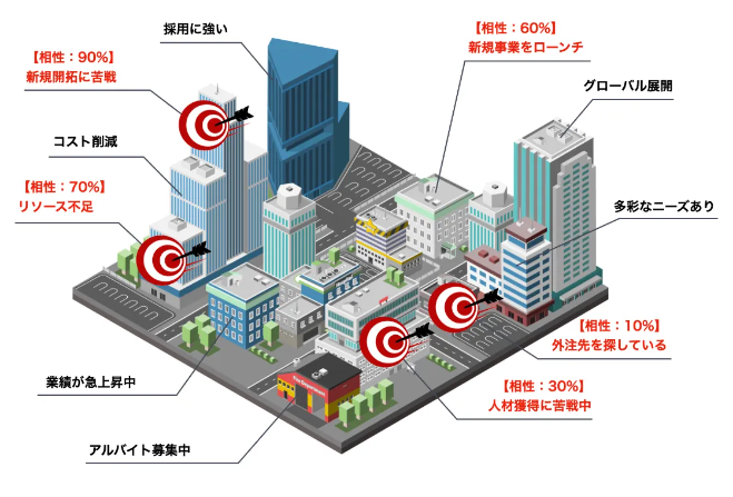 Sales Markは、急成長企業のセールスの仕組みを用いて、成約角度の高い市場を特定します。これにより、BtoB営業におけるリード獲得の効率化が可能となります。